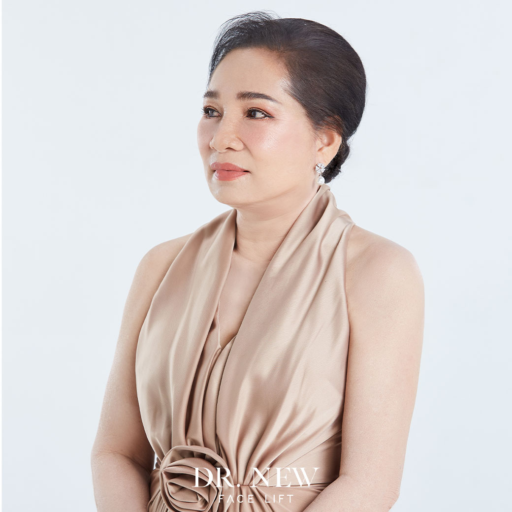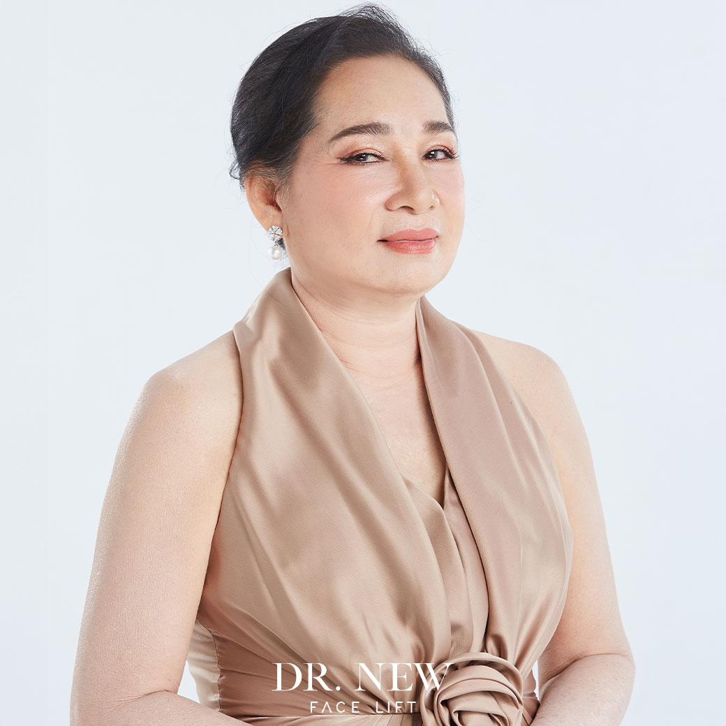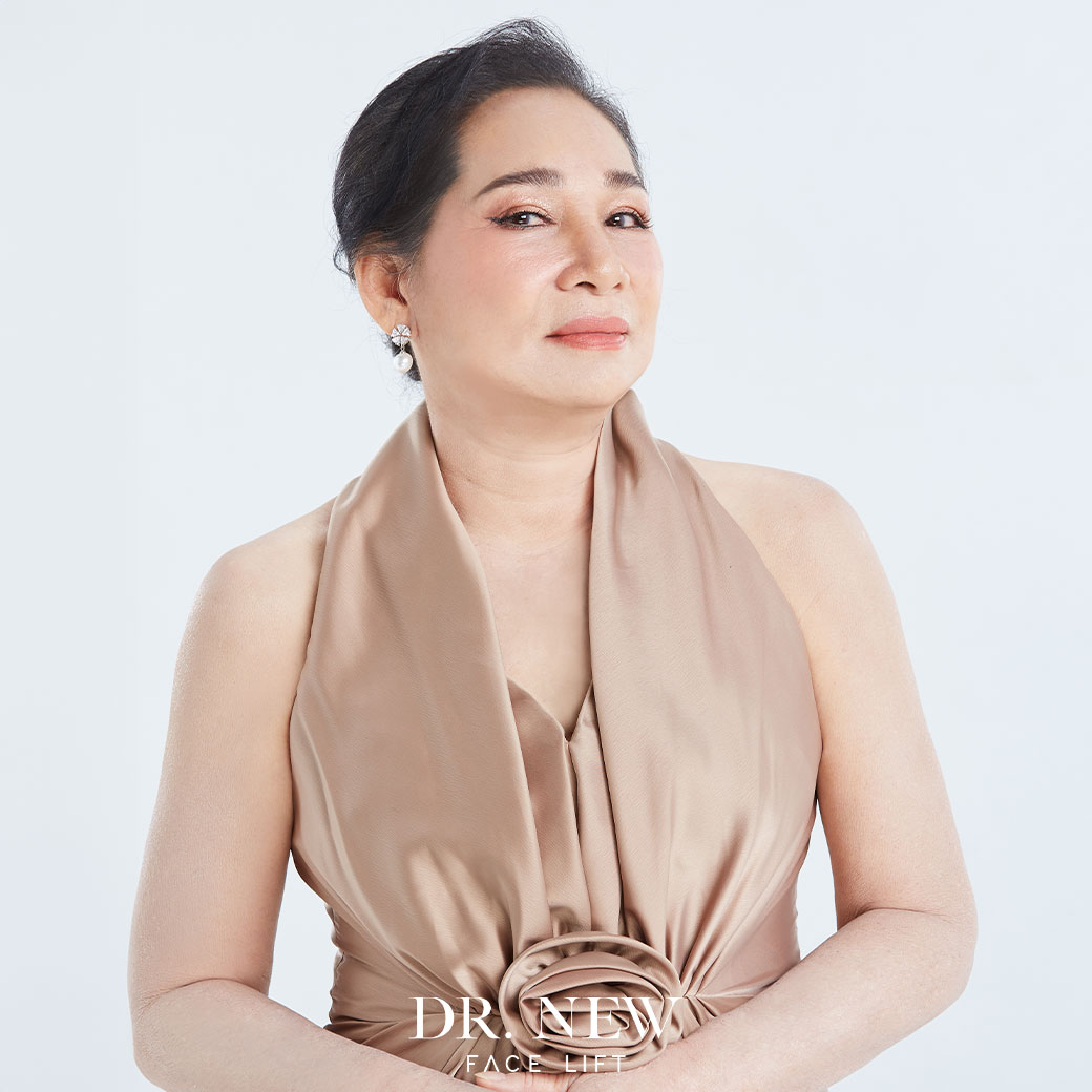 เคสคุณนิจ อายุ 67 ปี หมอเลือกใช้แนวทาง Persona Facelift โดยออกแบบการผ่าตัดเฉพาะบุคคลร่วมกันระหว่างเทคนิค Deep Plane Facelift เพื่อยกกระชับบริเวณโหนกแก้ม ร่องแก้ม และร่องน้ำหมาก รวมถึงทำ Necklift ควบคู่กันเพื่อแก้ปัญหาเหนียงและความหย่อนของลำคอ เนื่องจากคนไข้มีประวัติการทำหัตถการมาก่อน หมอจึงใช้เวลาในการผ่าตัดประมาณ 6 ชั่วโมง และดูแลเคสนี้อย่างใกล้ชิดตั้งแต่ก่อนผ่าตัดจนถึงช่วงติดตามผลหลังการฟื้นตัว